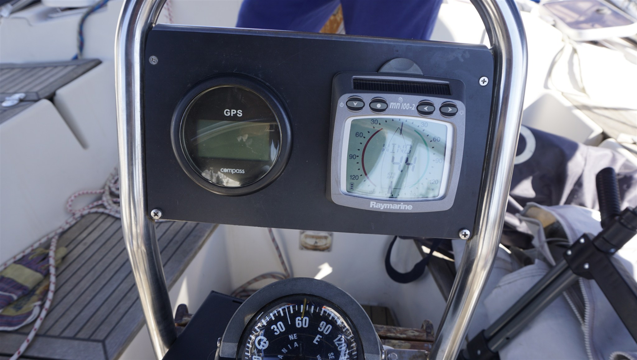 Autopilot, DSC UKW, Echolot (RAYMARINE), GPS (GARMIN), Kompass, Log (RAYMARINE), Logge (RAYMARINE), Radar (FURUNO), Radarantenne (FURUNO), Ruderlageanzeiger, UKW-Funk, Windmessanlage (RAYMARINE).