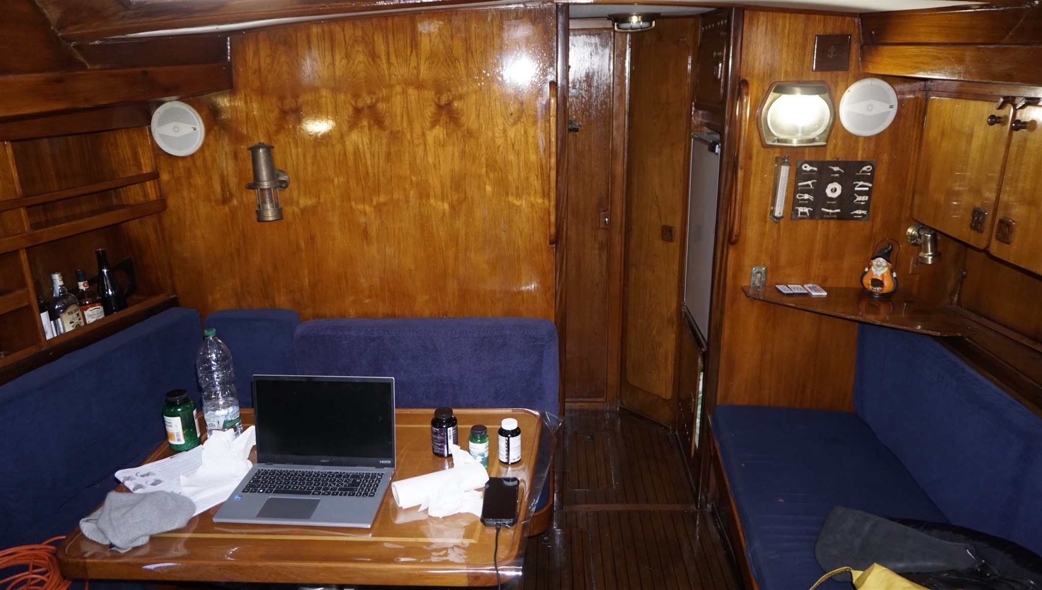 Autopilot (2 x ), Echolot, GPS, Kartenplotter, Kompass, Log, Logge, Navigationslichter, Navtex Empfaenger, Ruderlageanzeiger, SSB, UKW-Funk, Windmessanlage.