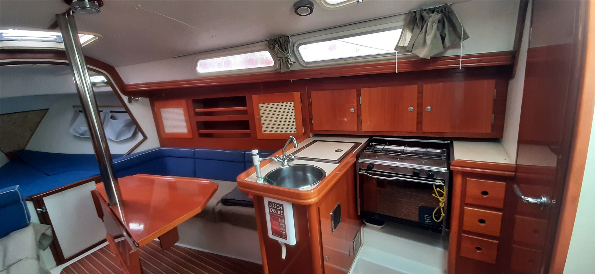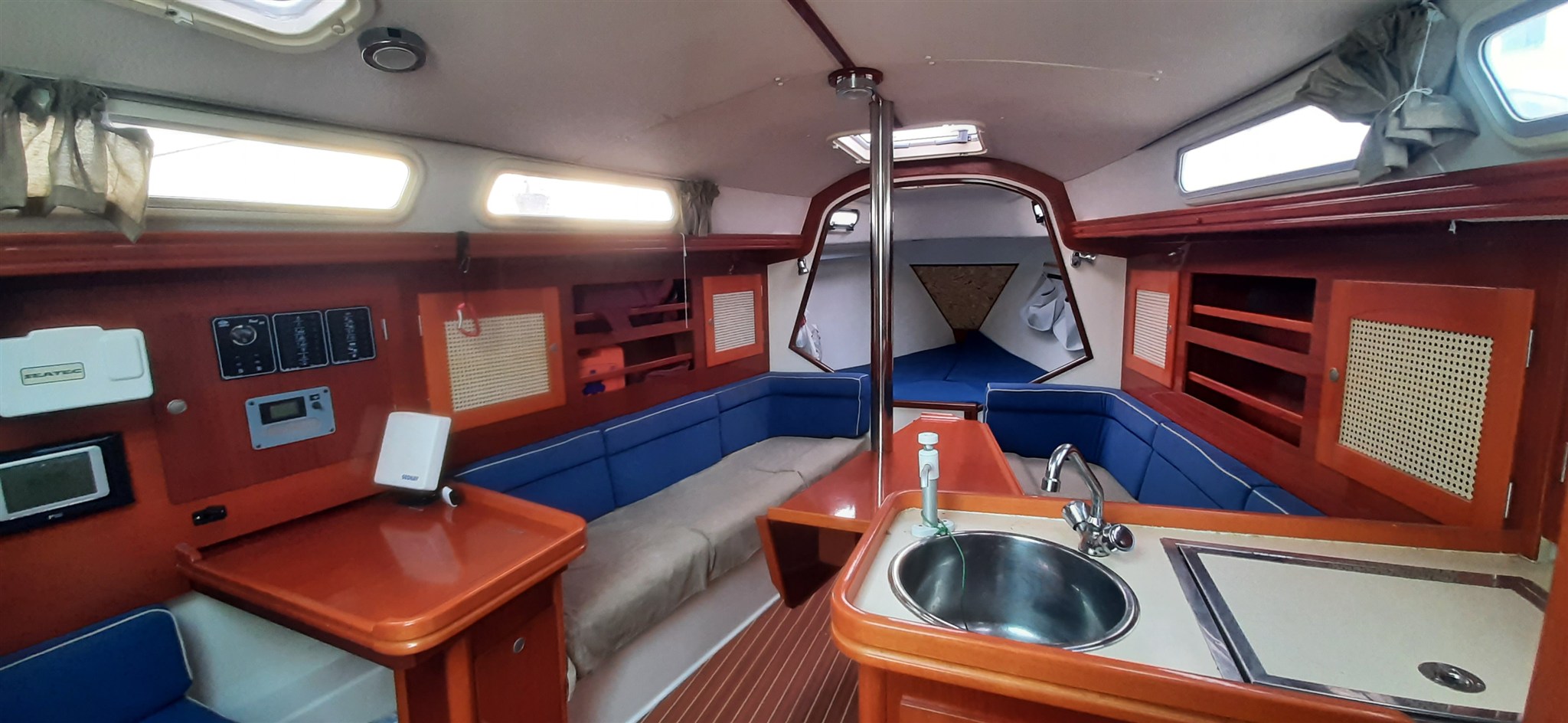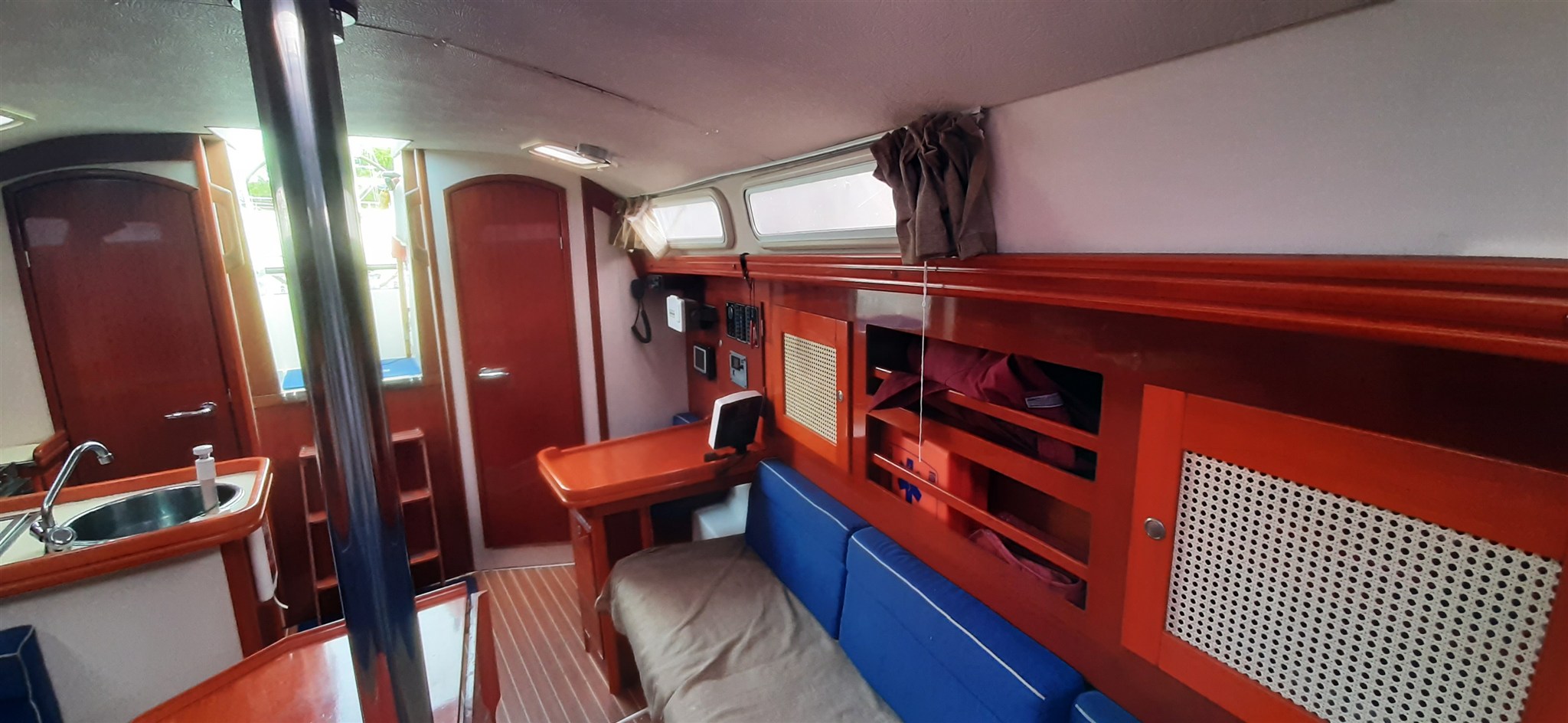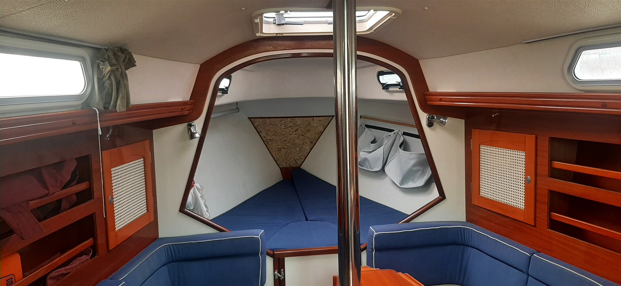 Im Inneren wurde das Bugschott geöffnet, um während des Rennens einen offenen Raum für die Segel zu schaffen.