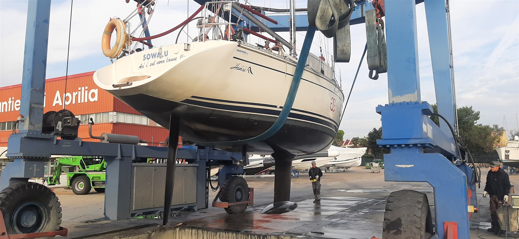 An Deck viele neue Trimmleinen/Strecker, Barberhauler, Backstagen etc. Der Kiel wurde in Zusammenarbeit mit einem Yachtkonstrukteur zu einem T-Kiel umgebaut.