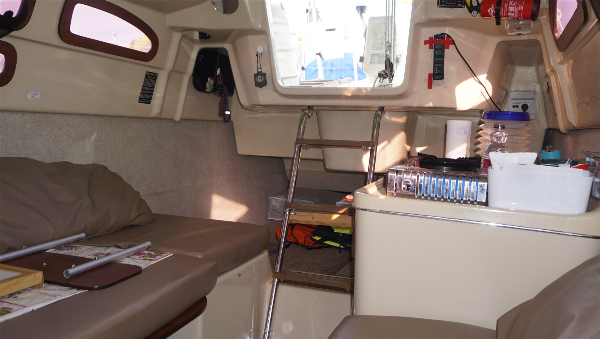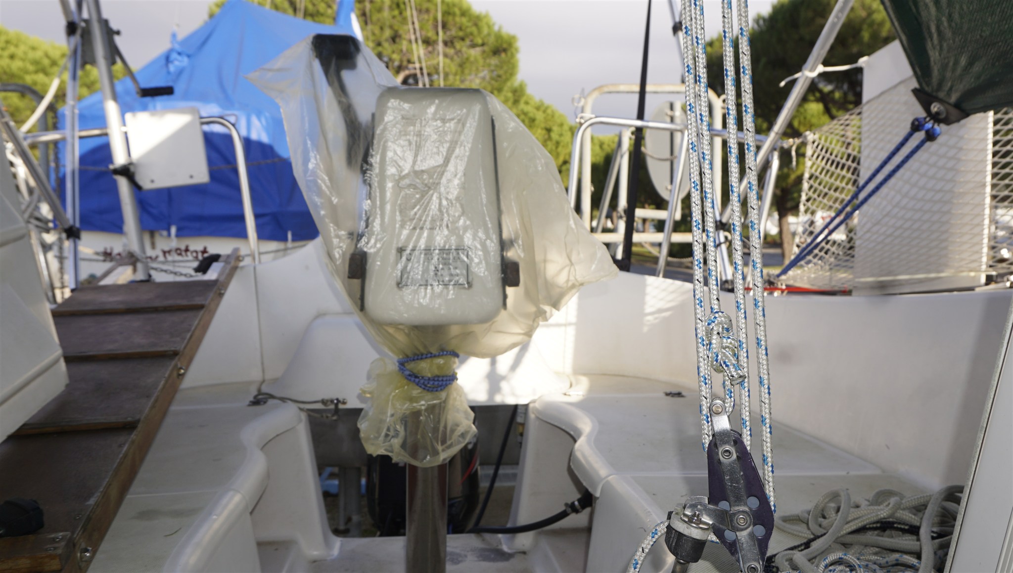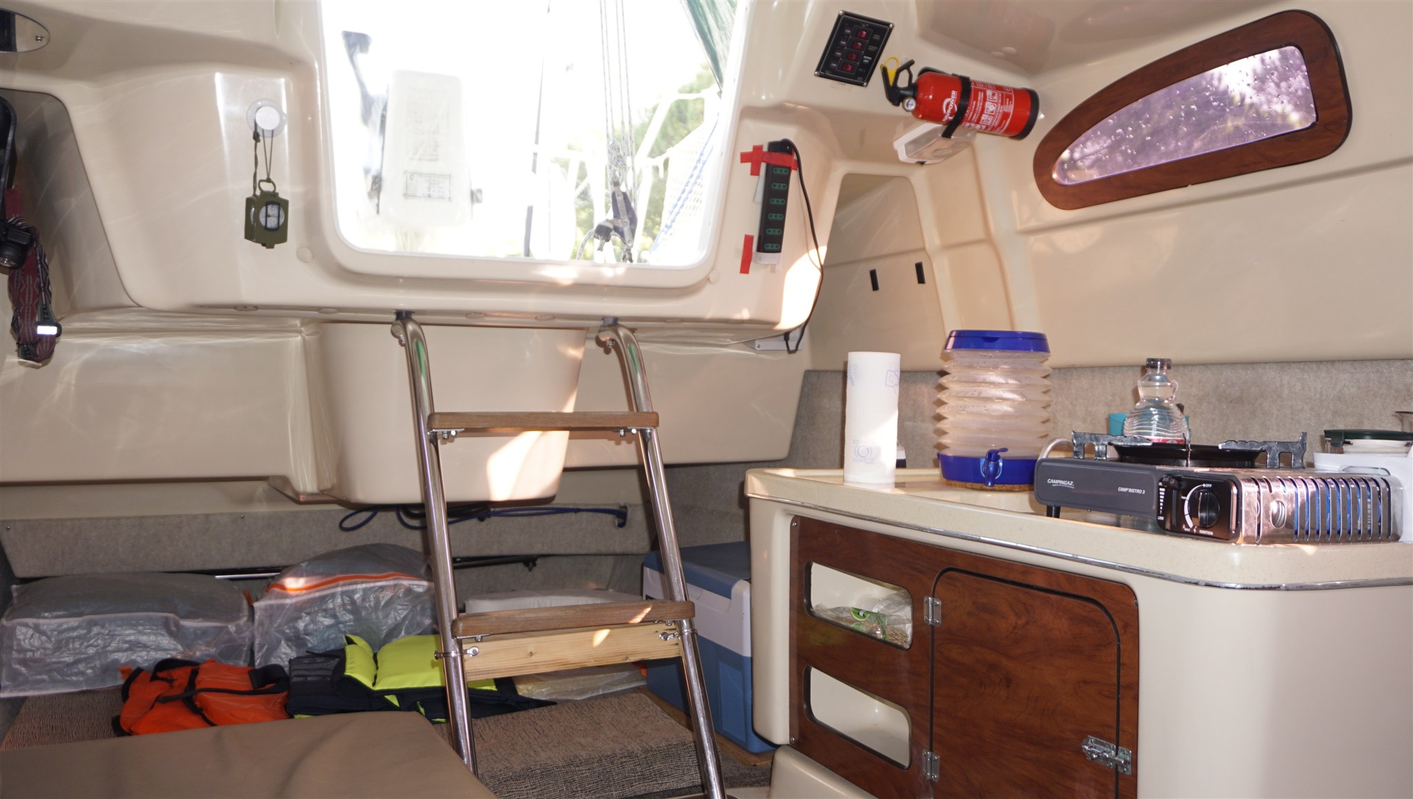 Anker, Badeleiter, Batterien, Cockpittisch, Fender, Gangway, Landanschluß, Landstromkabel, manuelle Bilgepumpe.