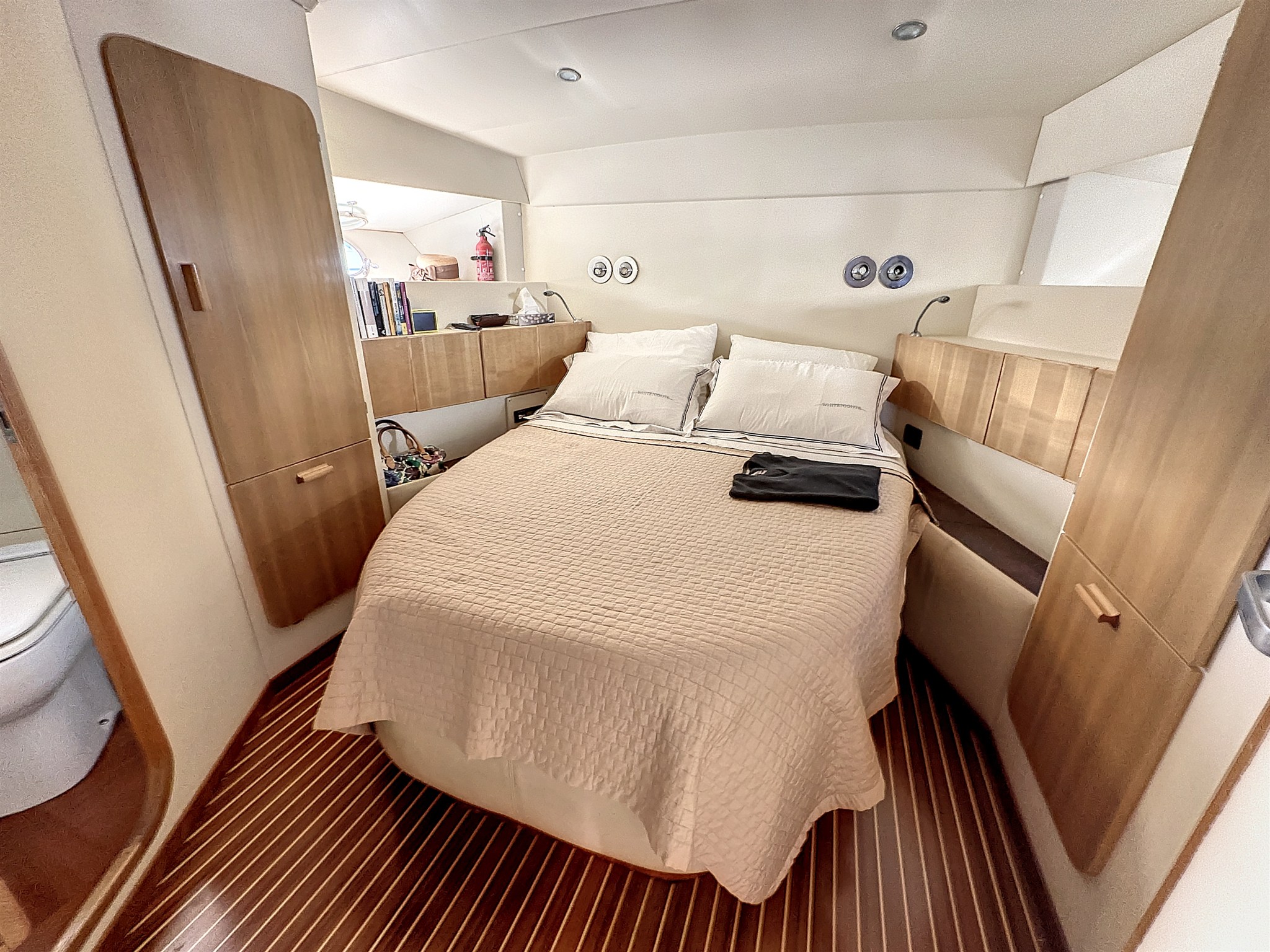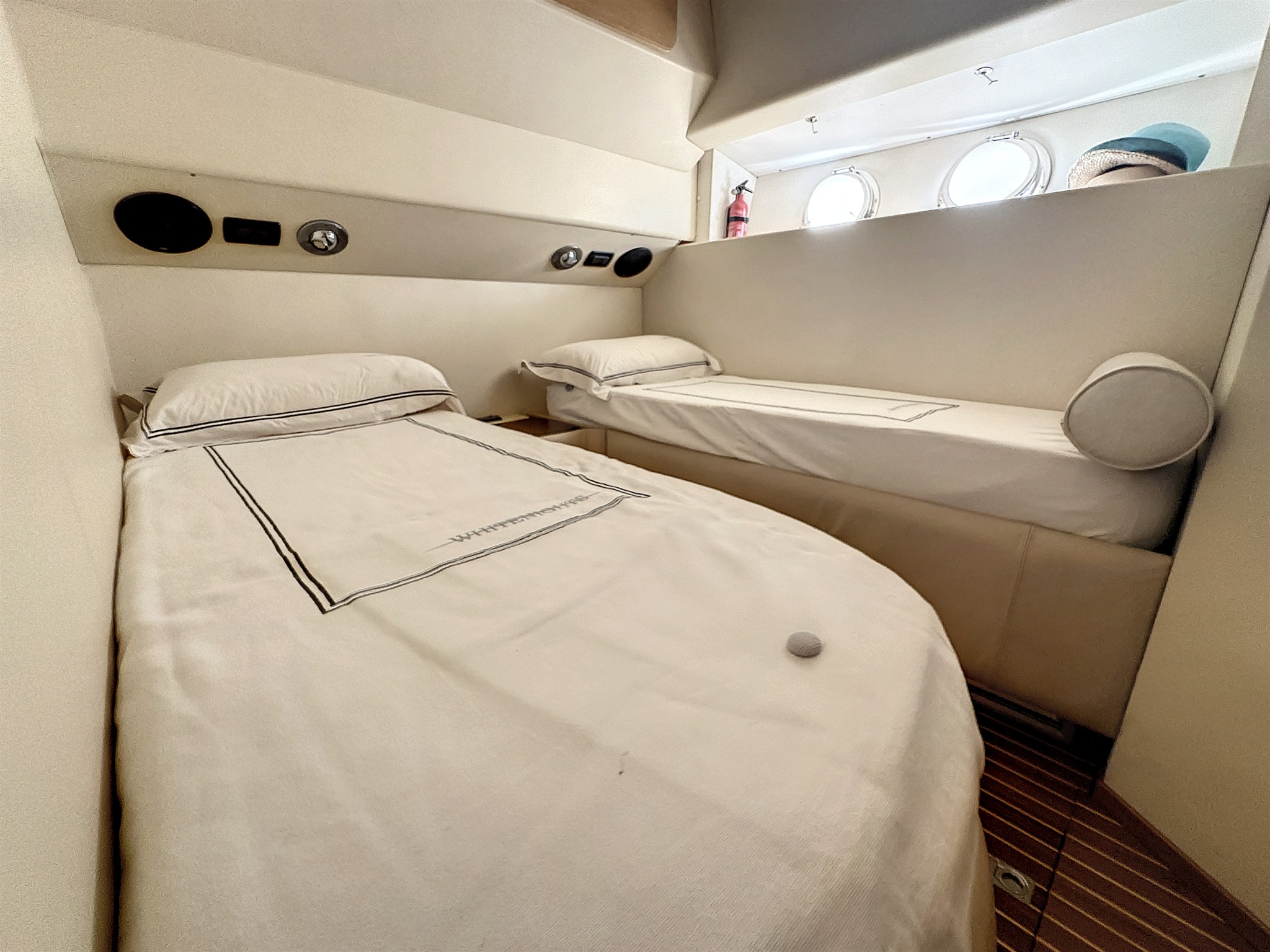 Anker (DELTA 32 kg), Außenbordmotor für Beiboot (TOHATSU 15 HP 2025), automatische Bilgepumpe, Badeleiter, Batterieladegerät, Batterien, Beiboot (ZODIAC YL 275 2025), Cockpitdusche, Cockpittisch, Druckwasserpumpe, elektrische Ankerwinde (LEWMAR Falcon 1.700 W), elektrische Bilgepumpe, Fender, Feuer-Löschanlage (2025), Gangway (HYDRAULIC GANDOLA 2016), Kran für Tender, Landanschluß, manuelle Bilgepumpe, Motoralarm, Plattform (2010), Rectifier, Signalhorn, Suchscheinwerfer, Teak auf Laufdecks, Teak im Cockpit, Trimmklappen hydraulisch.