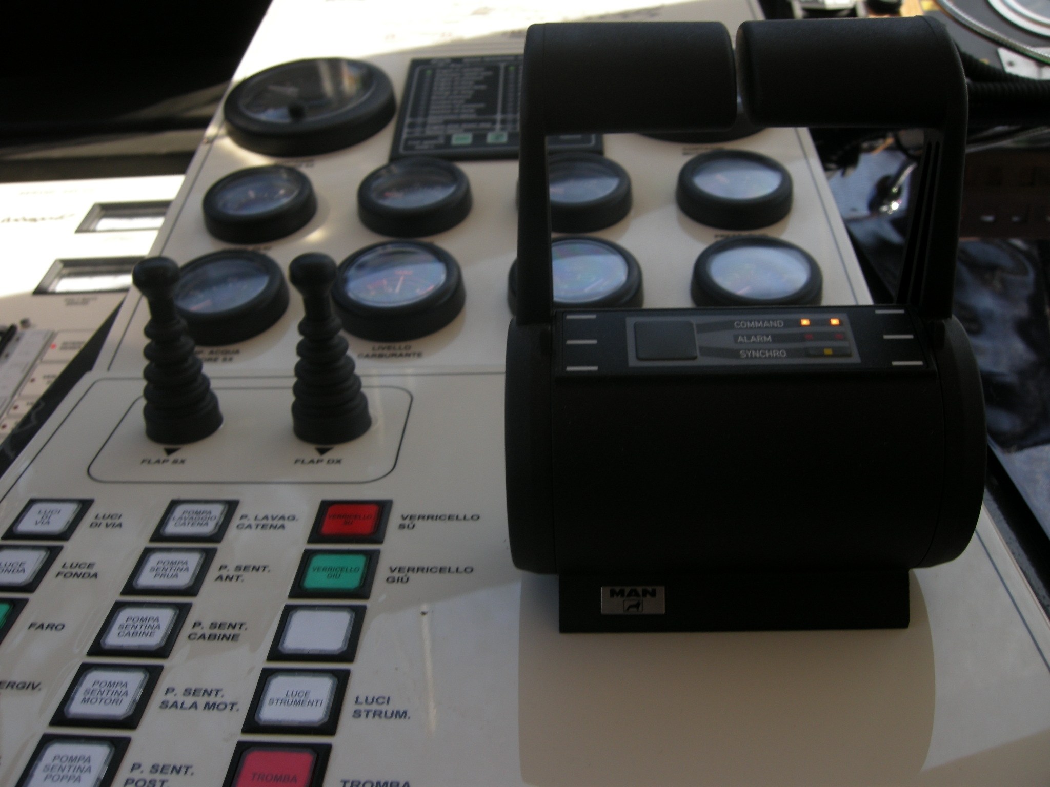 Autopilot, Echolot, GPS, Kartenplotter, Kompass, Log, Logge, Navigationslichter, Radar, Radarantenne, Ruderlageanzeiger, Sonar (Fishfinder), UKW-Funk.